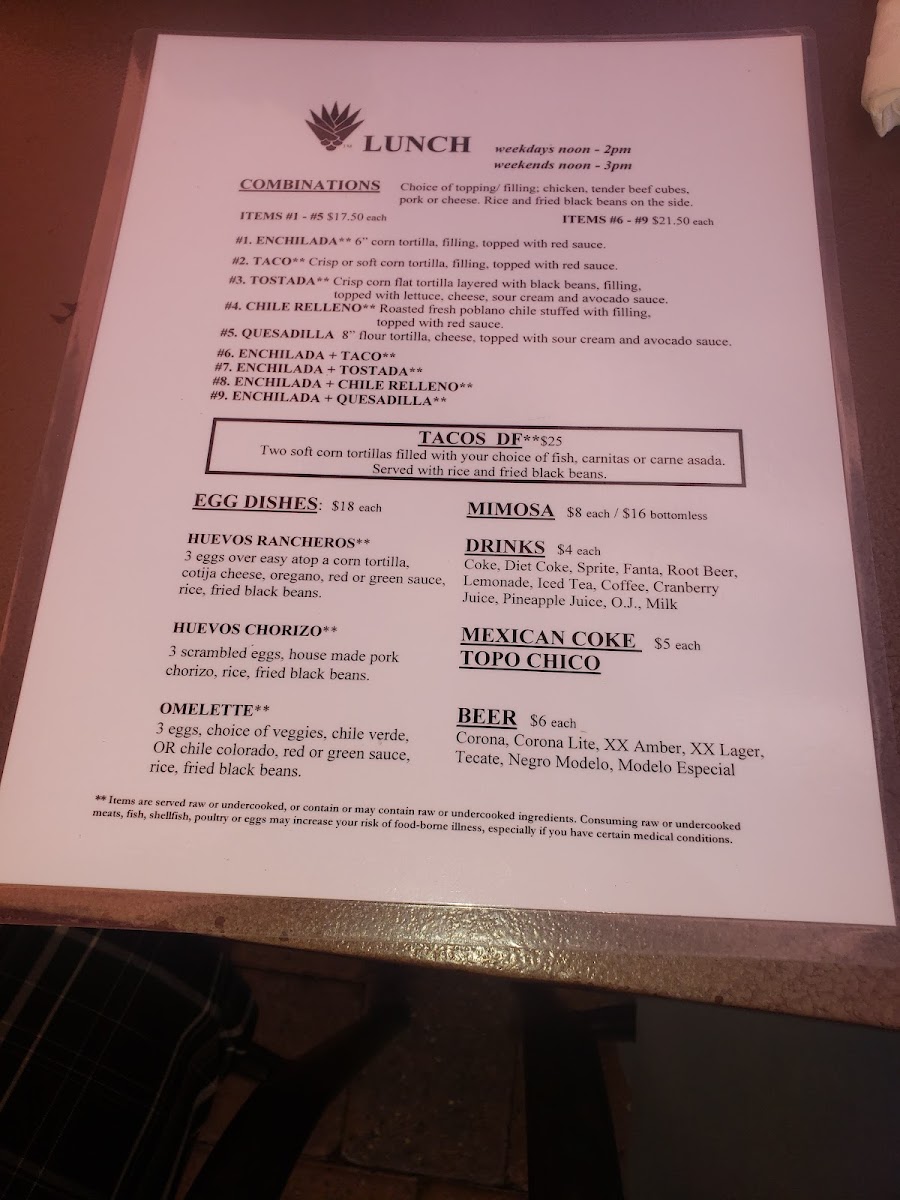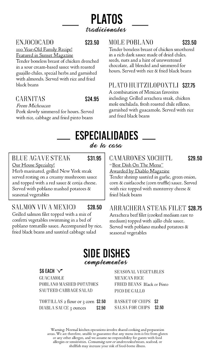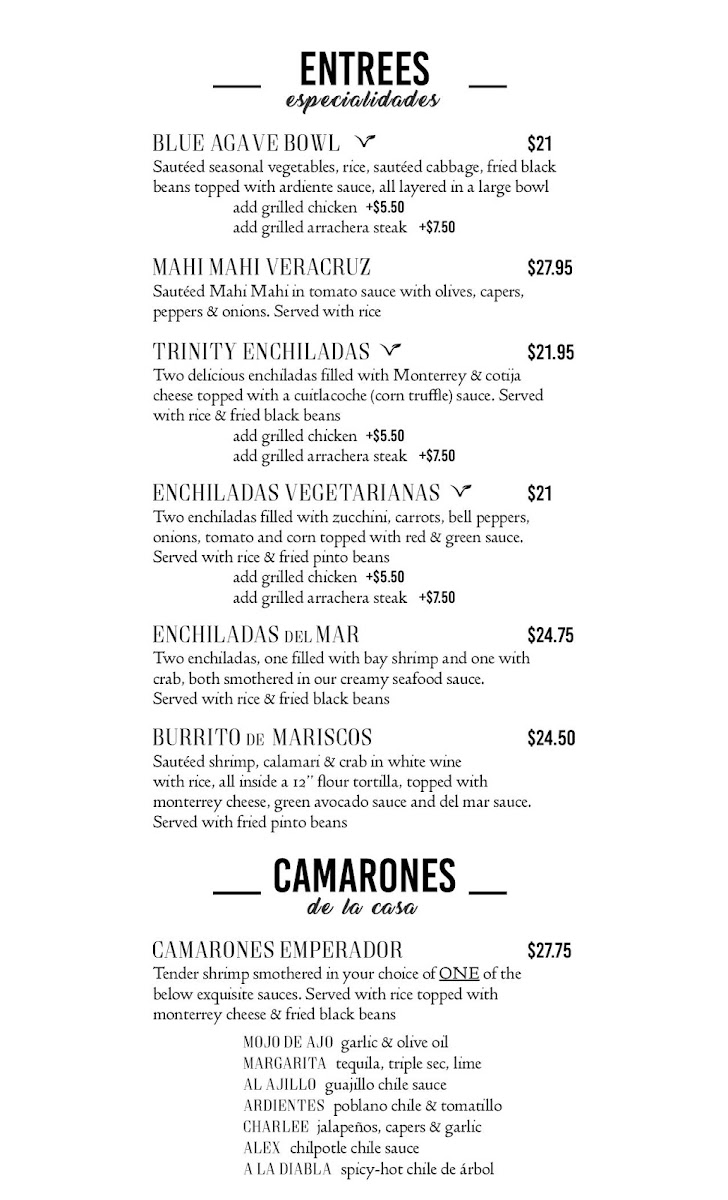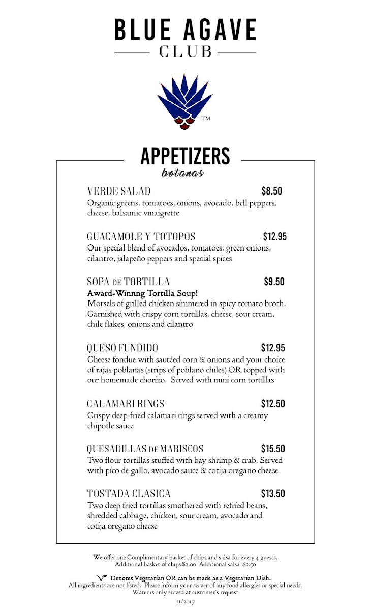 Blue Agave Club Menu